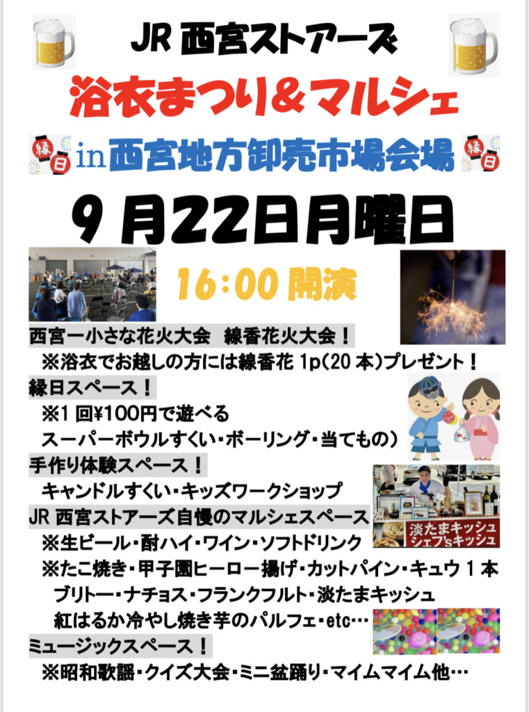 浴衣まつり&マルシェ Post Share Hatena Pocket RSS お知らせ コメント: 0 浴衣まつり&マルシェの開催決定! 9月22日の最新チラシ出来ました! 関連記事一覧 フレンテダンスセッションに出店協力‼️ 浴衣まつり&バルのマルシェ報告! 5月25日ミュージックフェスタ&マルシェの開催! 2025ミュージックフェスタ&マルシェ開催決定‼️ JR西宮ストアーズのミュージックフェスタ&マルシェ開催‼️ 20区 クリスマスコースのご案内❣️ JR西宮ストアーズのオータムフェスタ開催! 6月のミュージックフェスティバル&マルシェは盛り上が... コメント ( 0 ) トラックバック ( 0 ) この記事へのコメントはありません。 この記事へのトラックバックはありません。 トラックバック URL 返信をキャンセルする。 名前 ( 必須 ) E-MAIL ( 必須 ) ※ 公開されません URL